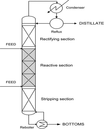 Reactive Distillation 설계는 다음 세 요소가 결합됩니다.